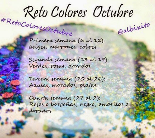 ¡Hola!Estamos en la segunda semana del Reto Colores Octubre que organiza Alba. Me está encantando participar en este reto, antes solamente participaba en retos de manicuras pero también me gusta participar en los retos de maquillaje. En cuanto me entere de otro reto de maquillaje seguro que me apunto y, si os enteráis de alguno, ya sabéis: ¡avisadme!