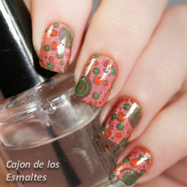 Y otro punto positivo, por fin estrené una placa que tenía abandonada precisamente por parecerme muy setentoso el diseño. No se Uds. pero cuando pienso en estampados de los 70"s voy para combinaciones de marrones, verdes y naranjas y combinación de figuras geométricas. Es como vivir en un eterno otoño.