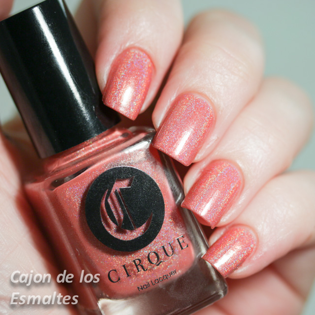 Y dejando la década de los 70 y el horrible estampado atrás les muestro ahora si algo bien bonito, el color de base, un esmalte holográfico cobrizo / coral de la marca indie Cirque: Luminous Owl. Y la parte más hermosa es que lo compré usado (bah, un único swatch) por 3 míseros dólares en un "blog sale" de una blogger australiana en lugar de los 13 dólares que sale nuevo. No sé si escucharon hablar alguna vez de los destash o blog sales, son básicamente ventas de garage que hacen las bloggers con esmaltes que no les gustan mucho (loco no?) en storenvy.com, etsy.com o a veces por mail. Se consiguen verdaderas gangas.