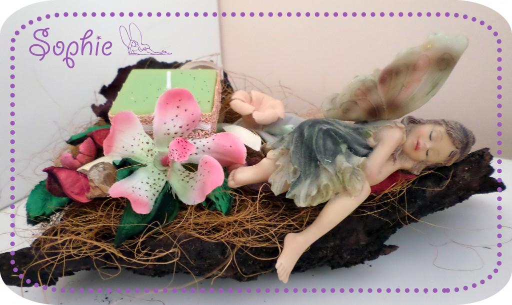 En esta segunda semana os presento a Sophie. Es muy muy especial para mí, ya que junto a su hermana (otra idéntica pero que está sentadita) son las dos primeras de mi colección. Me las regaló mi hermana hace ya muchísimos años, y aún siguen conmigo (¡y espero que sigan siempre!). La saqué a ella y no a su hermanita por la particularidad de que es el único hada dormida que tengo en mi colección.