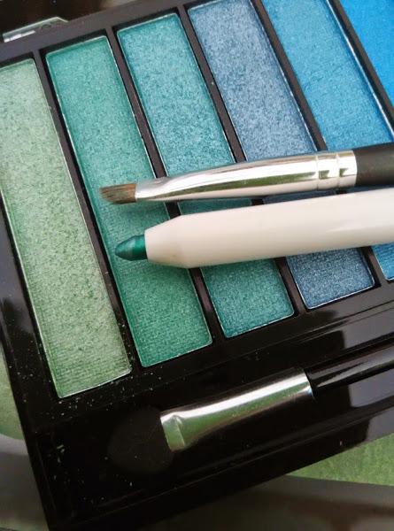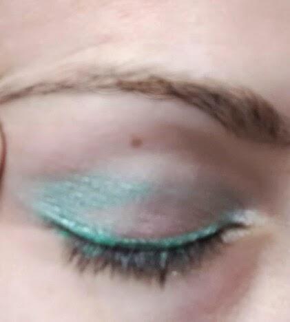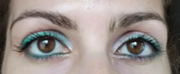 -Lápiz o sombra verde agua.(Crystal eyerliner de Kiko)(paleta de sombras mermaids vs unicorns Makeup Revolution)