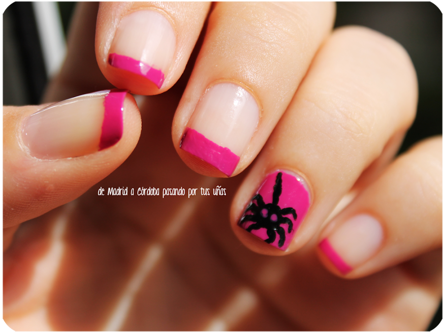Sé que no debería pintarme las uñas taaaan a menudo, pero es que anoche me aburría y dije "pues me voy a pintar las uñas del reto de halloween y así me lo quito ya de encima". Y aquí lo tenéis. No me gustan las arañas y sé que mi madre se pondrá histérica cuando abra el blog y la vea, pero bueno, es una araña muy maja :)