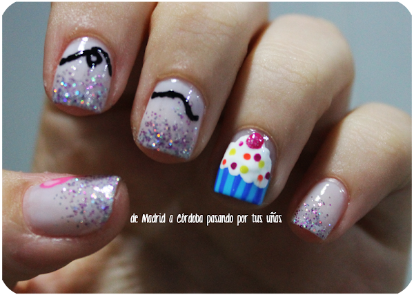 Yo solo tengo uno (precisamente el que me tocó de su sorteo jaja), así que las manicuras que haga serán solo con ese, pero creedme que se pueden hacer muchas cositas con un mismo glitter. Hoy he usado la técnica de la esponja para la manicura, además de compaginarla con uno de los retos que tengo pendientes (desde hace casi un mes u_u). Me nominó Mi nail art!. El tema que ella eligió fue el de las celebraciones porque en ese mes cumplía años, así que de ello trata la manicura de hoy, aquí os la dejo :)