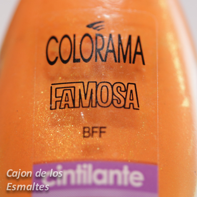 Por esas casualidades de la vida (nada que ver con la cantidad de esmaltes) justo tenía un color casi del tono exacto de la tapa del libro: BFF de la colección Famosa de Colorama. Vieron que los esmaltes Colorama son una lotería...en este caso si no lo tienen déjenlo pasar, es horrible pobrecito. Si tiene un brillo dorado lindo y hasta se ven en las uñas sin mucho malabar pero la fórmula es mala. Se necesitan 3 capas para cubrir la uña y hay que aplicar con cuidado de no dejar zonas desparejas.
