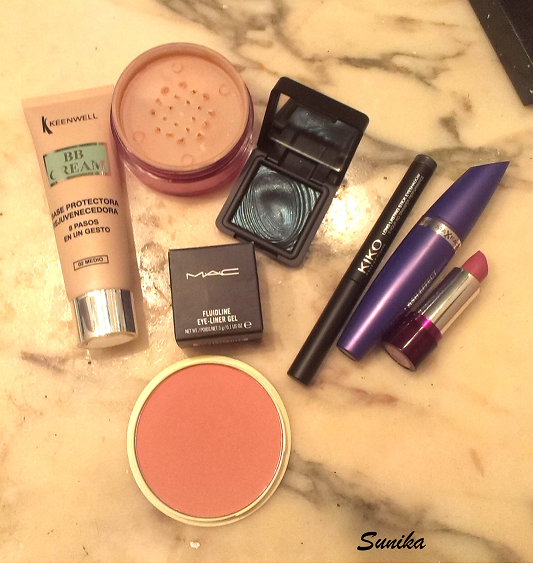 Es un look sencillo en el que he utilizado muy poquitas cosas que os paso a enumerar. Para el rostro la BB cream de Keenwell sellada y matizada con los polvos sueltos de MAC.