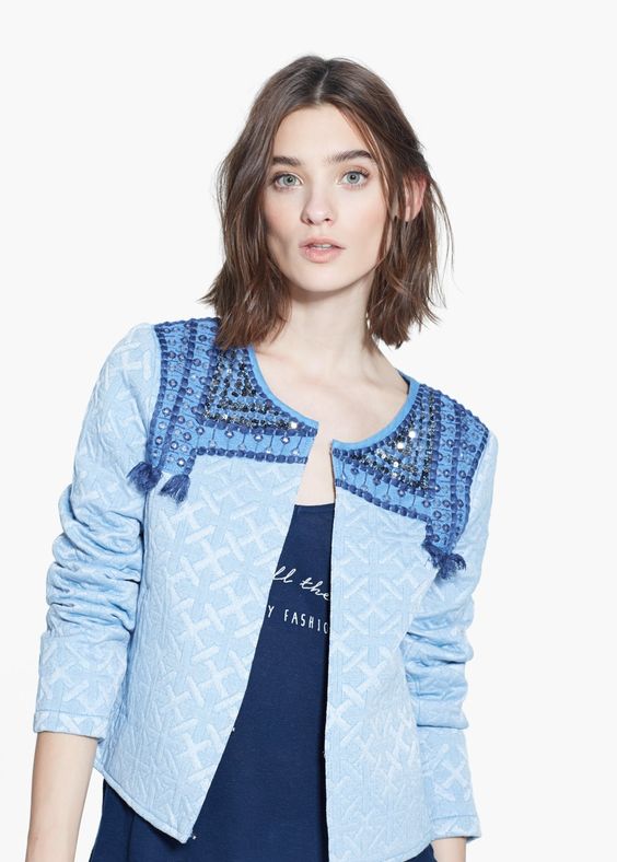 Si no encontramos una tela que nos guste, siempre podemos hacer una chaqueta en blanco, negro o del color que queramos y customizarla con toda clase de abalorios, pasamanería, bordados, cintas, etc. ¡Lo que se os ocurra!