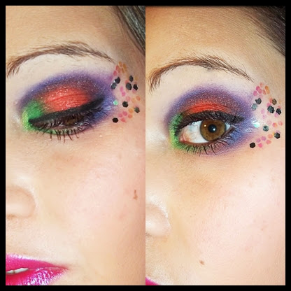 Primero solo hice el maquillaje en un ojo y, como me gustó el resultado, me animé a hacerlo entero. Espero que os guste, os dejo las fotos del maquillaje entero.