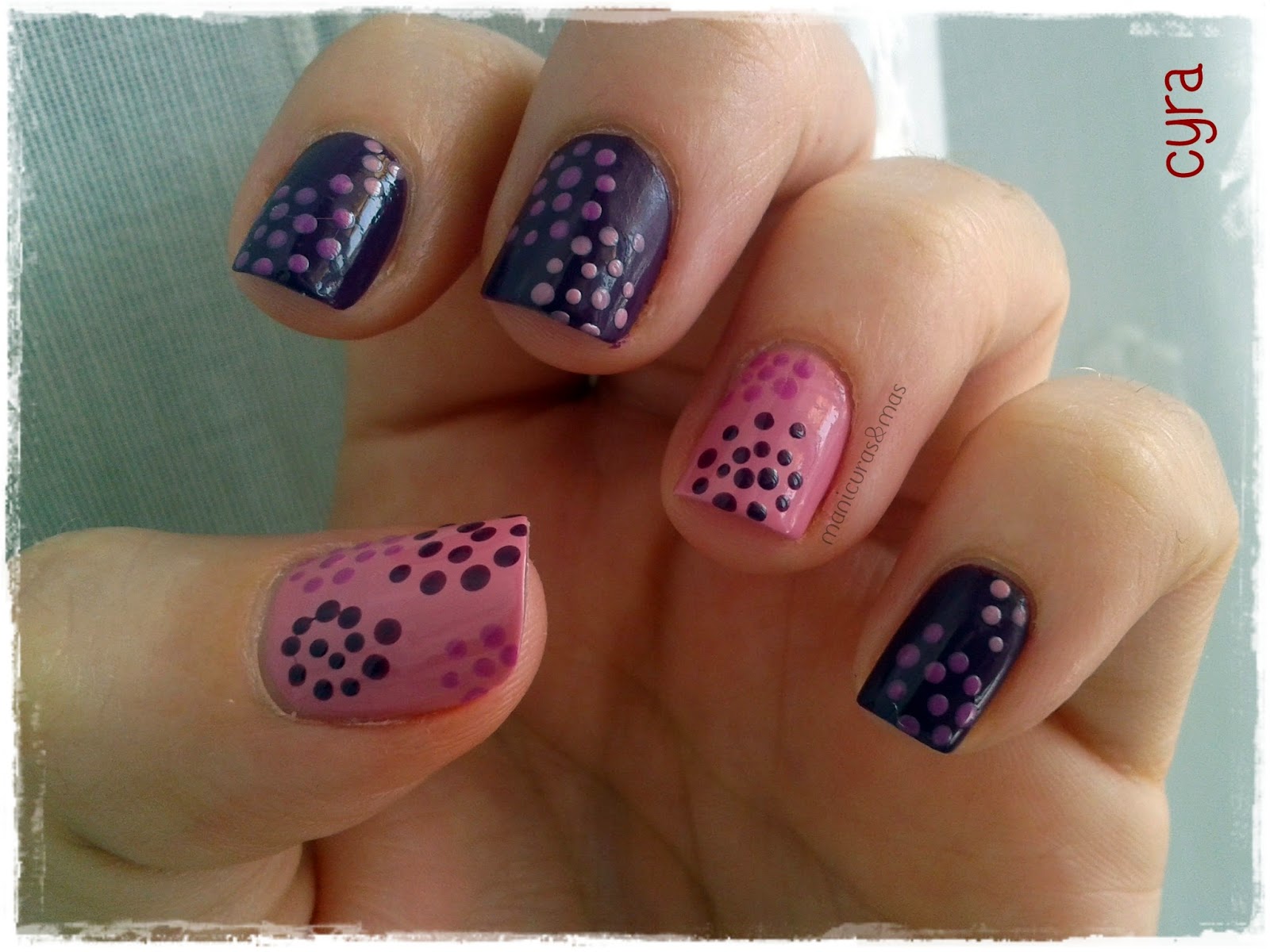Por mi parte he combinado un tono morado con otros dos más claritos que tienden a rosa para dibujar las espirales. Aunque no lo parezca, es uno de los diseños que más me ha costado realizar de este reto.