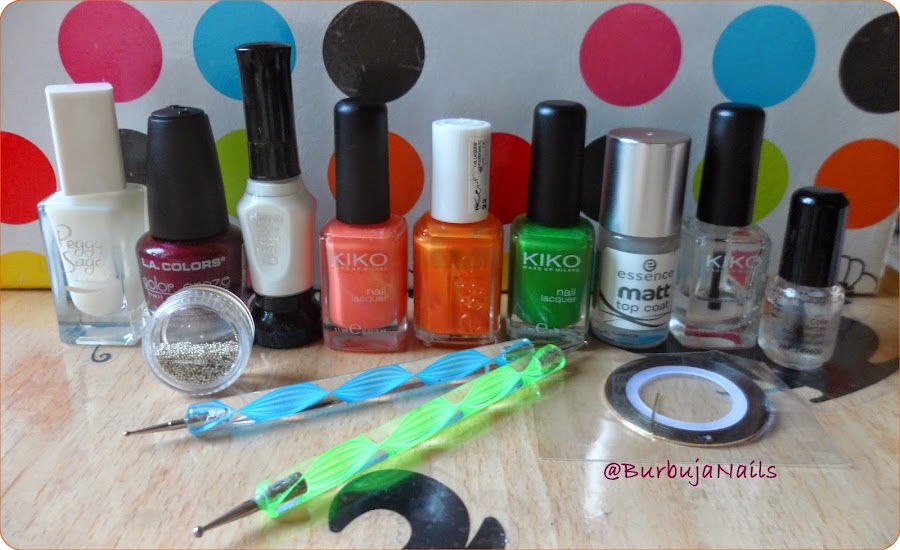 6. En el resto de las uñas dibujamos unos puntitos blancos y dejamos que sequen.