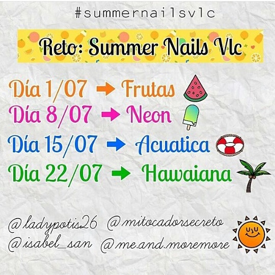 ¿Os gustan este tipo de retos? Si os animáis a hacer alguna manicura acordaros de publicarla con el hashtag #summernailsvlc para que podamos ver todas vuestras creaciones.