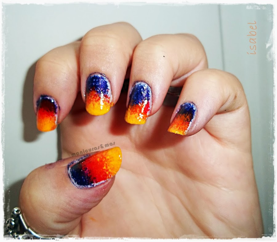 Mi compañera Isabel sí que ha hecho los deberes y nos trae una manicura con un degradado que va desde el amarillo a un azul intenso.