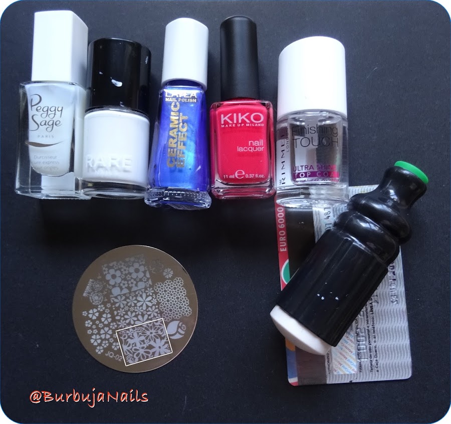 Para esta semana he elegido una manicura que tenía en el baúl, me la hice cuando los atentados de Francia de ahí los colores usados. Tengo que deciros que en este caso el mérito lo tiene la xikinina que es la que me pintó las uñas porque fue los primeros días que estuve de baja y ni eso podía hacer, yo solo hice la estampación que a ella eso todavía se le escapa jaja ¡Gracias su tata, te amo!!