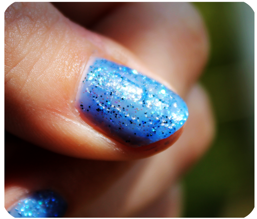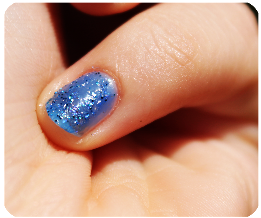 Como habréis visto, el esmalte azul no es cubriente del todo y este tiene unas partículas de purpurina monísimas <3