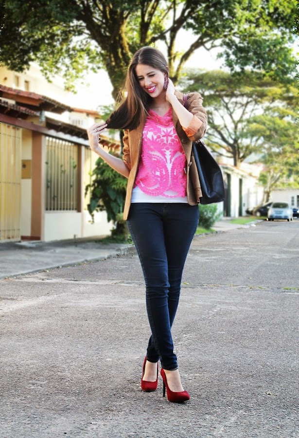 Este look es ideal para ti si esos son tus planes hoy, son prendas básicas y fáciles de combinar. El blazer es vintage y era de mi suegra, es super caliente y le da ese aire formal pero al mismo tiempo despreocupado a los outfits, el mismo es la pieza principal de este look. La camisa es de choies y es de mis favoritas, aunque tengo que admitir que me costo acostumbrarme a un color tan llamativo jejeje. Agregue los básicos jeans tubo, cartera y tacones del mismo color y los zarcillos Dopodomani para completar toda la pinta. ¡Y ya estás lista para esa reunión informal!