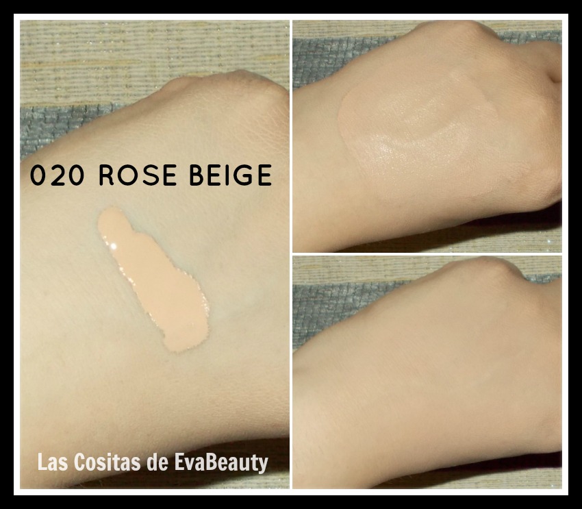 Y aquí os dejo swatches del tono 020 Rose Beige, un tono que tiende más al rosado, y que también se adapta bien a mi tono de piel, ya que es un tono clarito.