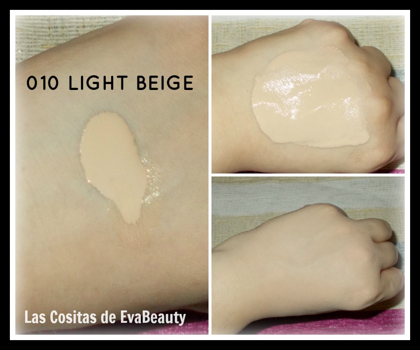 Aquí os dejo los swatches del tono 010 Light Beige, un tono claro que tiende al beige.