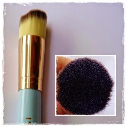 Descripción: Es una brocha redonda, plana por la parte de arriba y biselada. Es tan rígida que aplicar la base de maquillaje de manera uniforme es casi imposible, de hecho las veces que lo he intentado he acabado usando otra brocha o una esponjita. Pierde muchos pelos al lavarla.