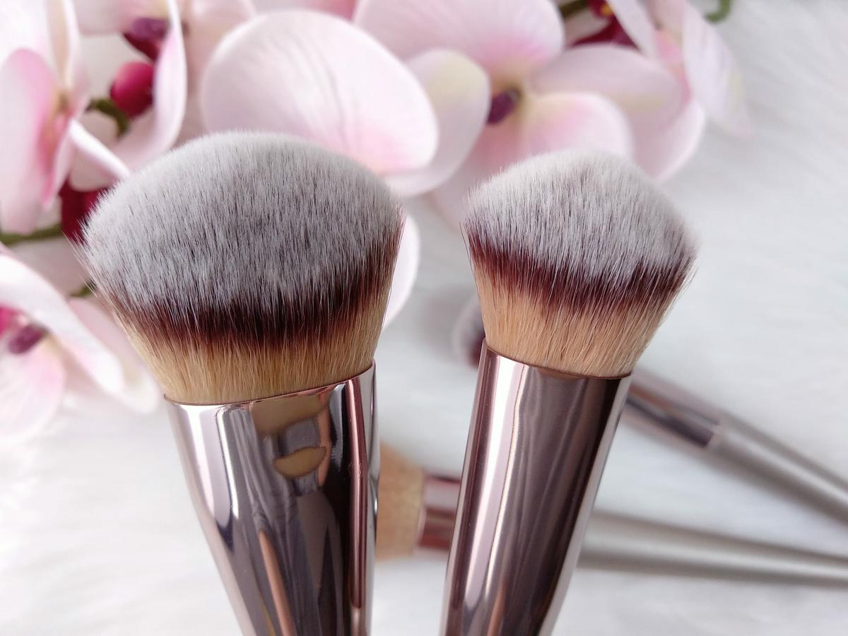 Dos brochas biseladas de diferente tamaño. Lo que las hace perfectas para aplicar la base y el corrector.