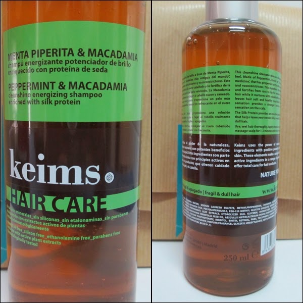 El champú que vengo ha hablaros se trata el de la gama "Menta Piperita & Macademia". Un champú que promete aportar brillo, estimular el cuero cabelludo y fortalecer el pelo de la raíz a las puntas. Pero además, también promete aportar hidratación a tu pelo, dejándolo con un tacto muy sedoso y fuerte, a la vez, que proporciona una agradable sensación refrescante en el cuero cabelludo.
