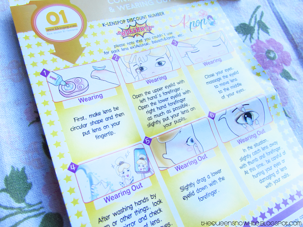 The package came with a paper with instructions to wear cicle lenses. They are almost the same as the ones that came behind the box, but it has more details.