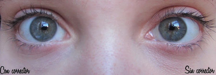 En fin, acá les dejo la foto demostrando cómo me queda un ojo con el corrector y otro sin él.