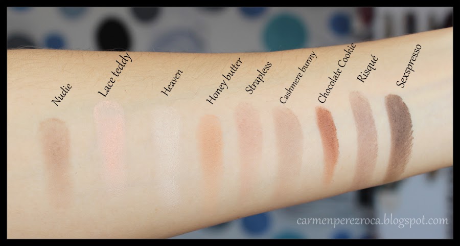 Personalemente creo que tiene unos tonos perfectos para utilizar a diario o cuando queremos crear transiciones en maquillajes más marcados. Las sombras que más me gustan son la Risqué, Sexspresso, Cashemere bunny y Chocolate cookie ya que las utilizo tanto para difuminar looks más cargados como solas para diario.