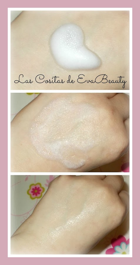 En cuanto a la textura, es cierto lo que promete la marca, ya que es una espuma ligera, delicada, suave, se extiende muy fácilmente, y con el contacto de la piel enseguida empieza a convertirse en una mezcla de espumita crema.