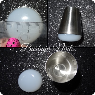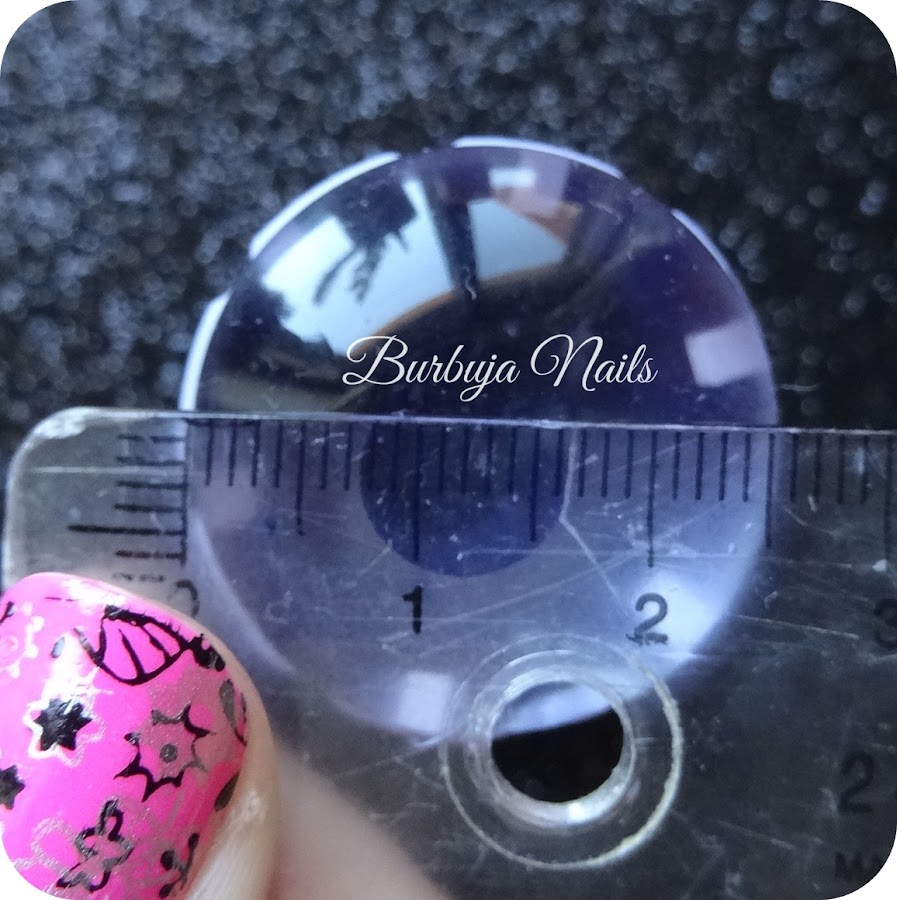 El sello mide 3,2cm y viene dentro de un cubilete como los antiguos para los dados de póker. Dos detalles muy importantes y en común para los dos sellos es que no para limpiarlos no se debe usar quitaesmalte ya que eso daña la goma, lo mejor para este tipo de sellos es hacerlo con fixo y que no se deben sacar del cubilete porque son sellos muy sensibles.