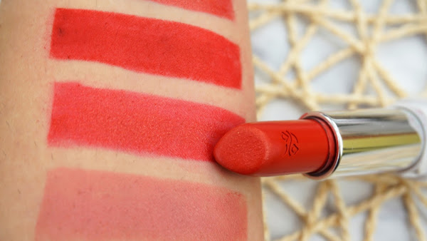 En este caso nos encontramos ante un labial mate, muy pigmentado, con textura agradable y de fácil aplicación. Con una duración excelente y muy cómodo de llevar. Otro tono rojo precioso, pero en este caso sin ningún tipo de partícula y con una textura un poco más seca que el anterior.