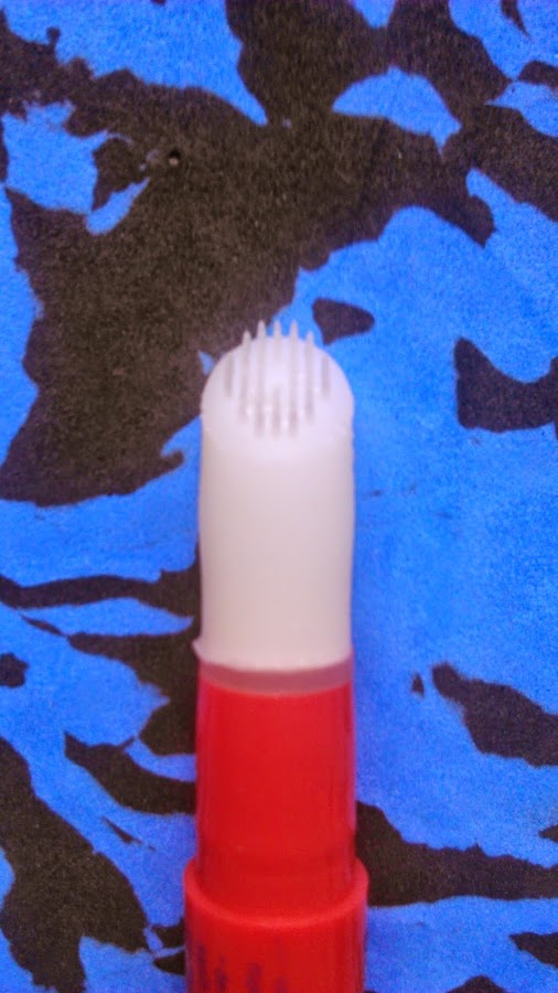 Pues bien, empiezo contándoos que lo llevo usando desde septiembre, no todos los días, ni siquiera todas las semanas, pero ahí sigue, aún dura. Son 2 ml de producto y viene presentado en formato lápiz, con un extremo de silicona con púas y un agujerito por el que sale el producto. Además, en el otro extremo tiene una ruletita que da vueltas para hacer que salga el líquido. Os lo enseño: