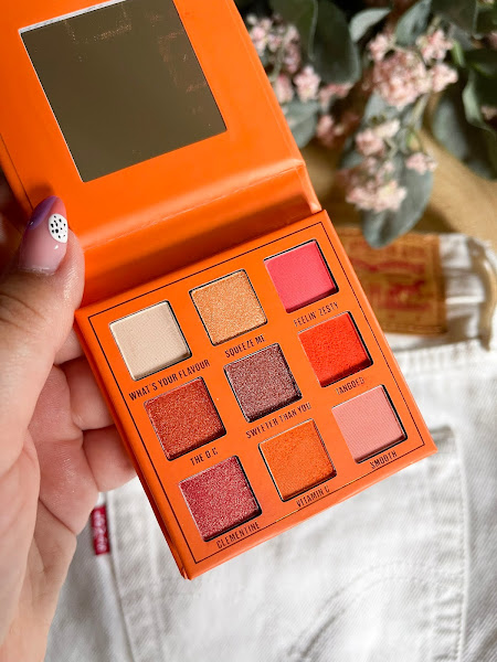 Squeeze Me está compuesta por 4 sombras mate, 4 metalizadas y una con partículas de glitter, en tonos naranjas, champanes y corales.