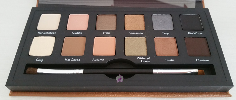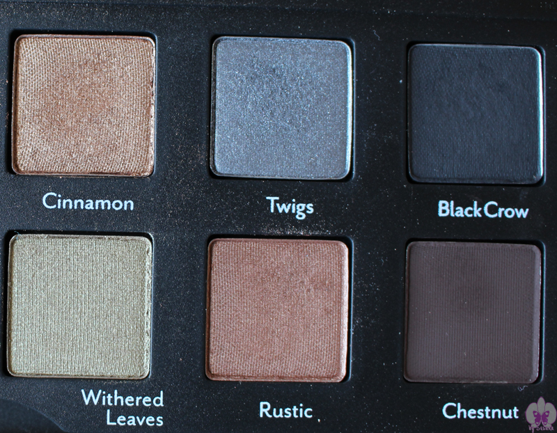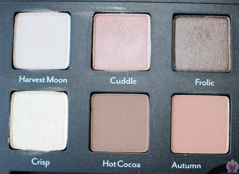 La paleta se compone de 12 colores, en varios tonos de marrones, beige, y también tiene un verde y un gris. Casi todas las sombras son metalizadas pero también cuenta con varias mate, que son una pasada.