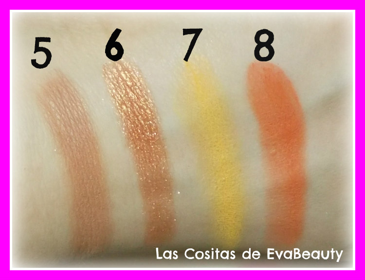 Aquí os dejo las sombras numeradas para que os sea más fácil identificar los swatches, aunque todas las sombras tienen nombre debajo.