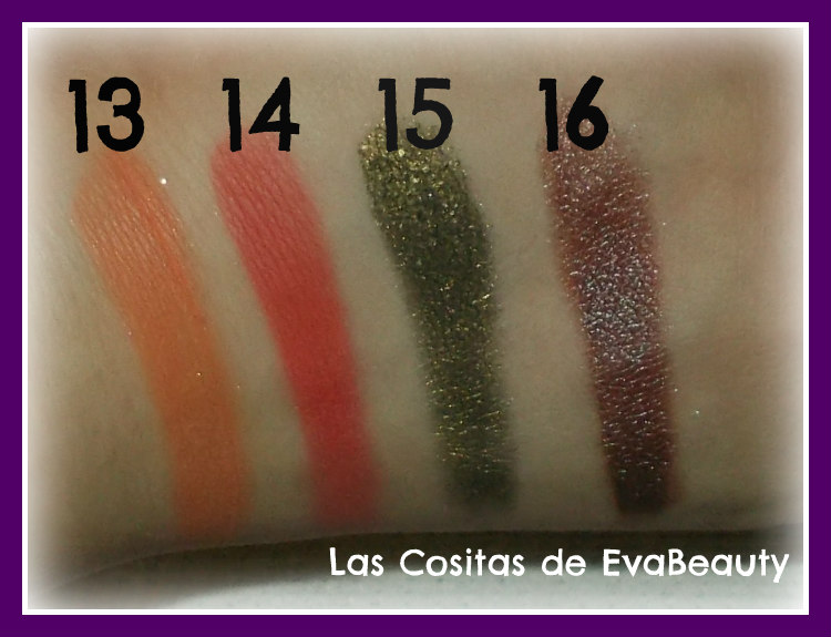 Empiezo con los swatches de la paleta y aquí os dejo las diferentes sombras numeradas.