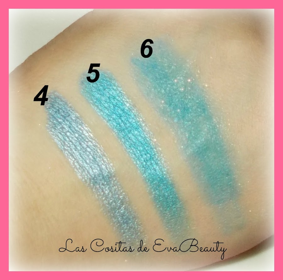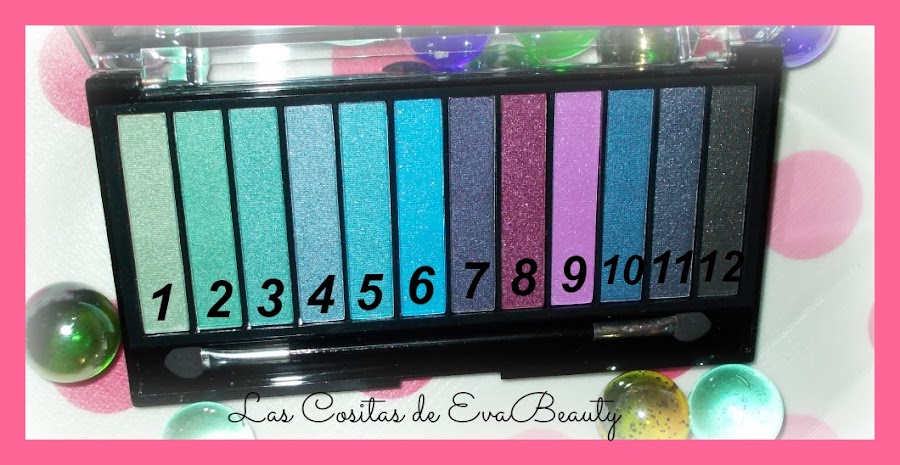 Paso a enseñaros los swatches, y os he preparado foto de la paleta numerando las sombras para que veáis cuales son.