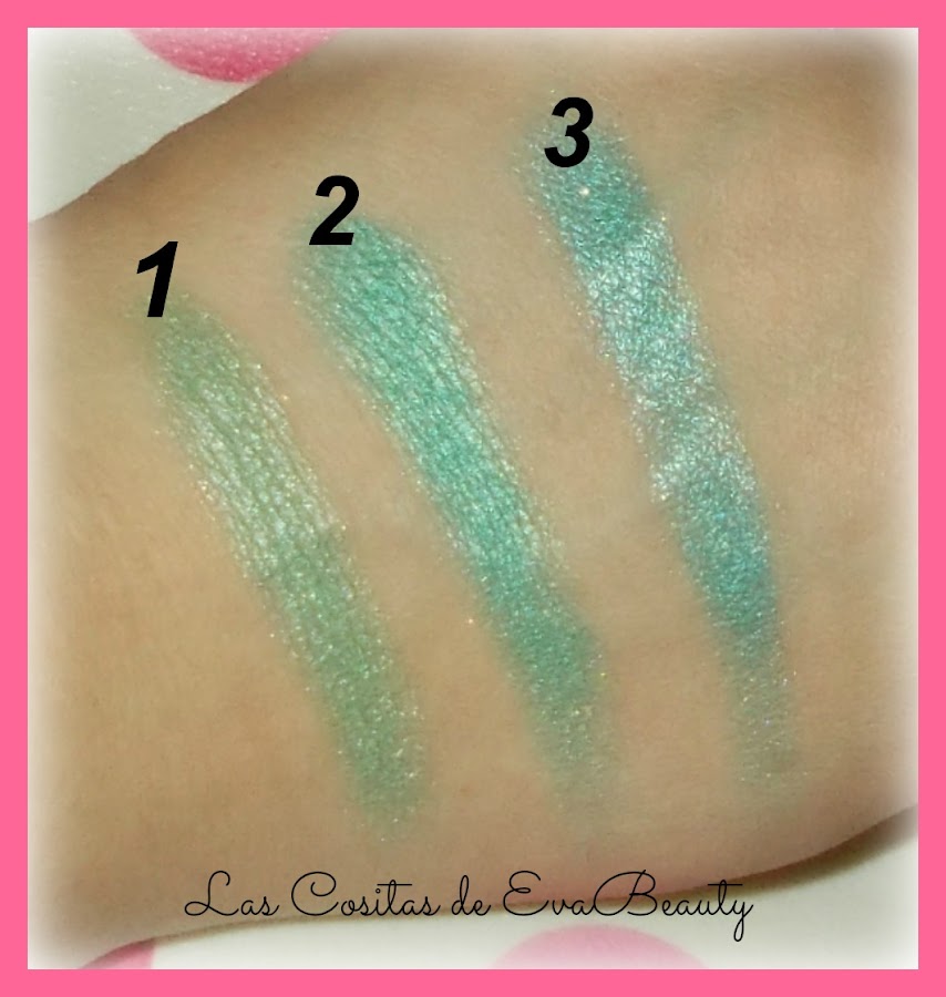 Son sombras satinadas y alguna con purpurina, que son las que menos pigmentan.