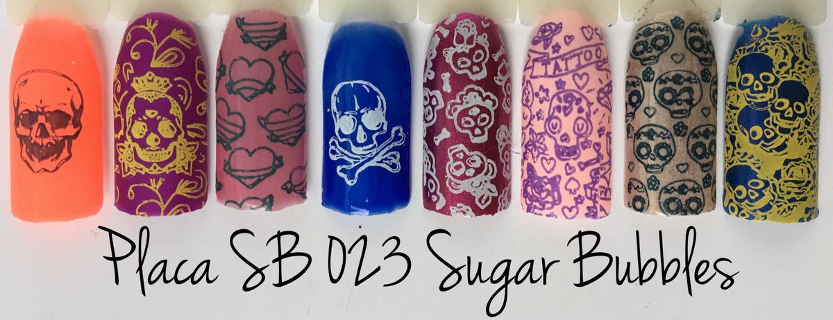 que tal estamos?!?!?! Aquí con unas granizadas que dan miedo….y que no son nada normales!!! Que estamos en Julio y esto parece Noviembre!! En fin…el tiempo esta loco o mejor dicho….lo estamos volviendo loco…pero bueno, es lo que hay…y salvando las Circunstancias Climatologías del día de hoy….vamos a ver lo que os tengo preparado y es que os voy a presentar una nueva marca de Placas de Stamping….SUGAR BUBBLES!! La conocéis?!? Habéis oído hablar de ella?!?! Yo la conocía pero mas bien poco, solo de oídas….y sinceramente estoy encantada de haber probado estas placas porque me parecen originales, diferentes y que estampan genial….Hoy os voy a enseñar los Swatches de 3 de sus placas y como no, toda la info y una nueva manicura…