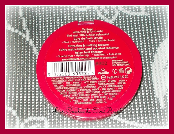 ¡DI QUE SÍ A LAS FRUTAS DE ASIA! Verdadera cura, a base de frutas de Asia, este polvo combate los brillos y ofrece a la piel los beneficios combinados de 2 tesoros de la naturaleza: el caqui hidratante y el yuzu de virtudes astringentes y equilibrantes. De este modo, gracias a este polvo compacto decimos adiós a las antiestéticas y molestas zonas de sequedad y brillos. Con cada nueva aplicación, la piel queda perfecta y unificada, mate, iluminada, descansada... En una palabra: ¡resplandeciente!.