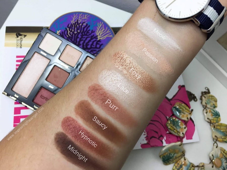 Como se ve en los swaches todas las sombras son super pigmentadas (eso es solo con una sola pasada). Super suaves y nada polvorientas. Además las que tienen brillo no van perdiendo las partículas a lo largo del día. Y que se me olvidaba, super fáciles de trabajar.