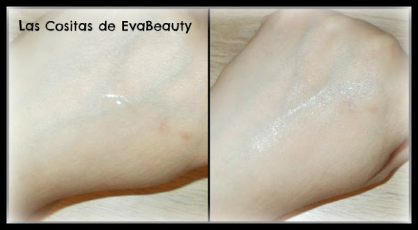 Tiene una textura gel acuoso, que al contacto con la piel se vuelve agua y se extiende al momento y se absorbe enseguida.