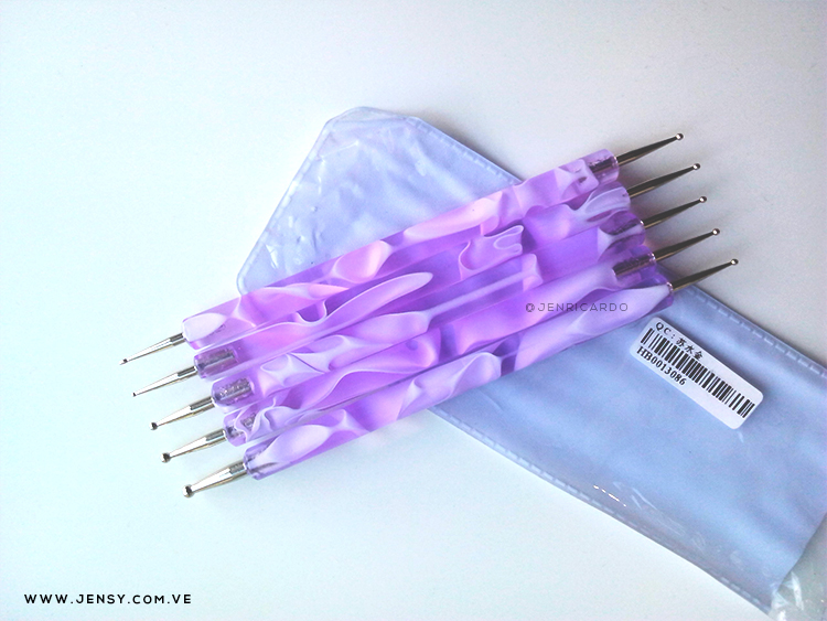 Hoy les traigo review + tutorial de nail art, empecemos hablando de este pack de punteros, desde hace bastante tiempo que quería unos y estos los adquirí en TOSAVE.COM. Debo decir que son de muy buena calidad, el material es de acrílico con un diseño marmoleado y son cinco punteros con diferentes puntas.