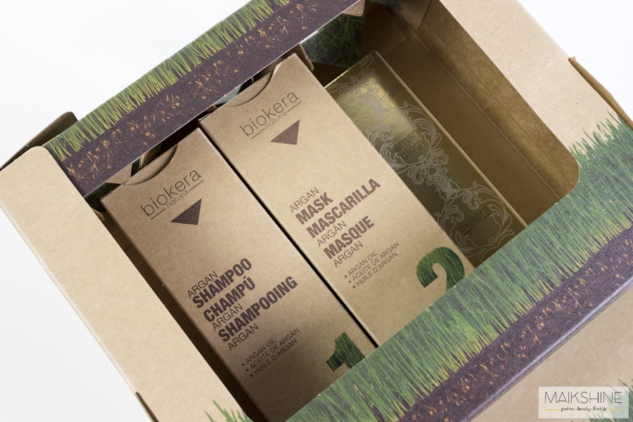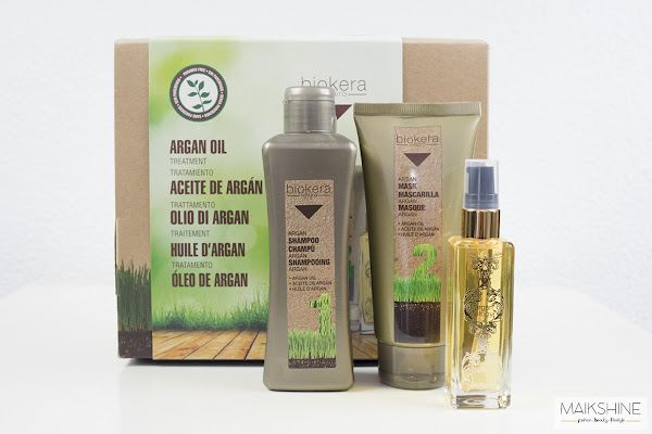 Este tratamiento de argán de la línea BIOKERA Natura de Salerm, consta de 3 productos: Champú, mascarilla y sérum; y sus ingredientes estrella son el aceite de argán y el aceite de algodón.
