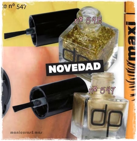 De los dos esmaltes, el nº 547 es un tono dorado, muy brillante, y el nº 548 es un top coat de "fideitos" dorados (yo los llamo así porque no sé su nombre exacto). El precio de cada uno es de 2,75?, un poco alto para la poca cantidad que traen, la verdad.