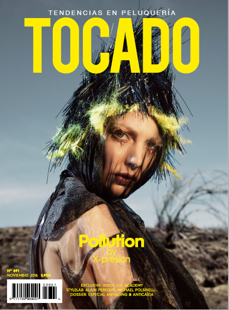La imagen de la portada de la revista titulada "Pollution by X-presion" se inspira en el mundo contemporáneo, en los materiales artificiales que nos rodean constantemente hasta integrarse en nuestra imagen, hasta formar parte de una nueva identidad. Representada por looks extremos con cortes de cabello asimétrico, plumajes y elementos brillantes, y colores sombrios simulando la desertización del planeta. A lo largo de este número he podido comprobar que se van a volver a llevar un estilo rollo ochentero de melenas muy circulares, los cardados, los extremos los rubios blancos o negros, los colores llamativos y los flequillos rectos que te tapan hasta el campo de visión. He llegado a la conclusión que al igual que en la ropa se lleva lo diferente, lo que no pasa desapercibido pero creo que sólo es apto para los más atrevidos.