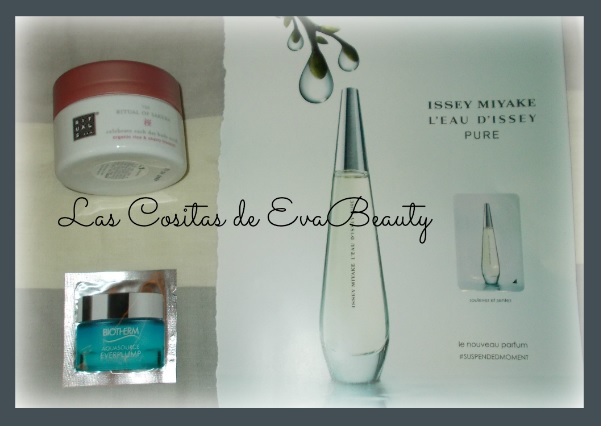 También trae una muestra de la crema Aquasource Everplump de Bioderm, y perfume Pure de Issey Miyake.