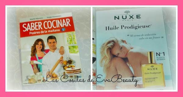 Como regalo trae un libro de SABER COCINAR especial postres y muestra NUXE para pedir en farmacia o parafarmacia.