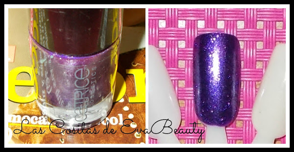 És mi primer esmalte de Catrice, y és un tono precioso, púrpura con chispitas diminutas que según la luz se ven fucsias.