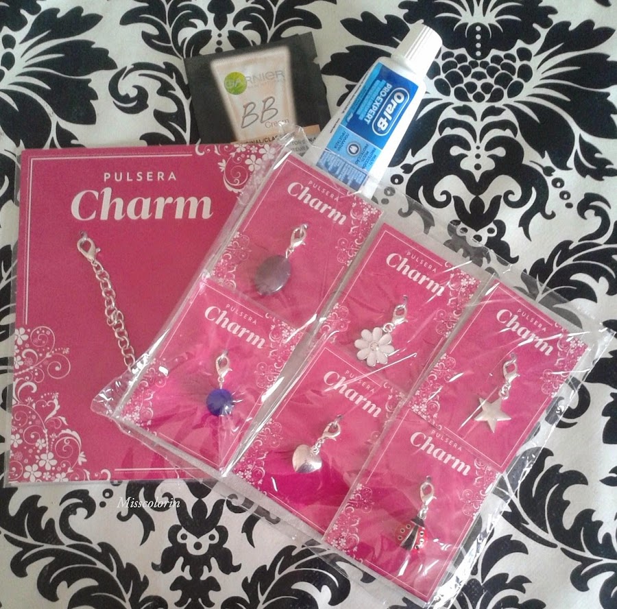 Obsequio: cadena de pulsera con 6 colgantitos o charms (la calidad es media-baja, pero son graciosos). Como vienen al azar, en cada revista hay modelos distintos.