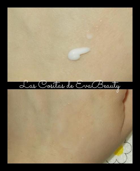 Me encanta su textura en crema, superligera, de un color blanquecino, y que al contacto con la piel se transforma como en agua, se absorbe con mucha rapidez y no queda sensación grasienta en la piel.