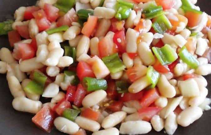 2 taza de judïas blancas cocidas (habichuelas, porotos) 1 taza de tomate picado 1 taza de ají verde dulce o pimentón verde 1/2 taza de cebolla blanca picada
